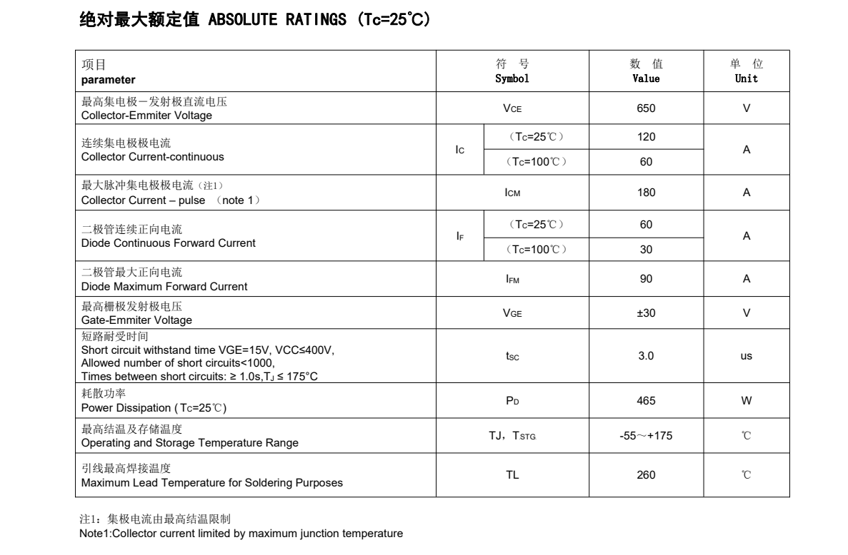 目前FHA75T65A詳細參數:其具有75A, 650V, VCEsat典型值:1.75V-typ ,<2.0V;ID (Tc=100℃):75A;BVdss:650V;IF(A)(Tc=25℃):150A;IF(A)(Tc=100℃):75A。